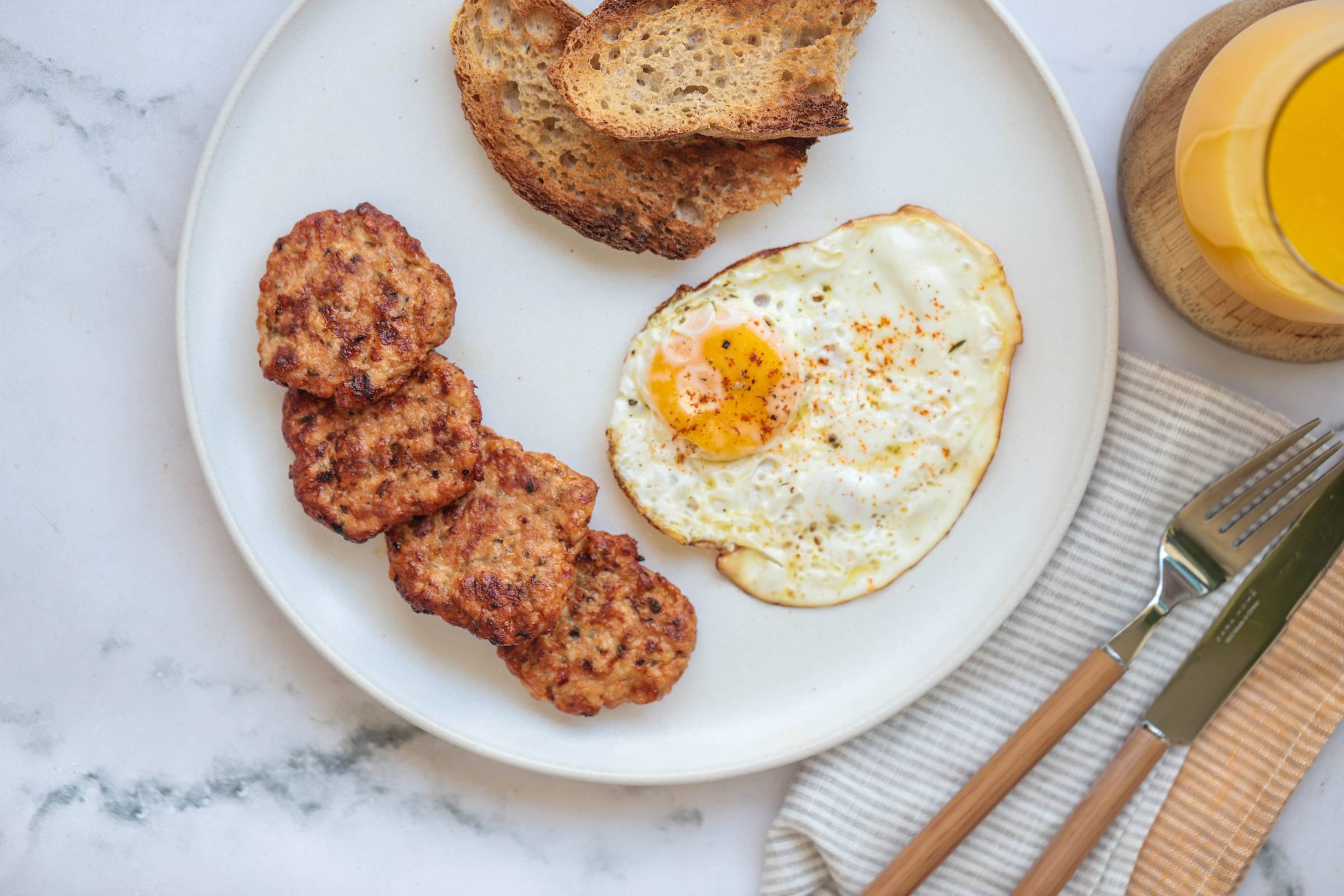 Recipe of the Week AIR FRYER TURKEY BREAKFAST SAUSAGE Serves 4 1 lb. (450g) ground turkey 1 tbsp. coconut sugar 2 tsp. fresh sage leaves, finely chopped ¾ tsp. salt ¾ tsp. smoked paprika ½ tsp. red pepper flakes ½ tsp. fennel seeds, crushed ½ tsp. garlic powder olive oil cooking spray What you need to do In a medium bowl, combine the ground turkey, coconut sugar, sage, salt, paprika, red pepper flakes, fennel seeds, and garlic powder until evenly combined. Using damp hands, form the turkey mixture into 8 thin patties about 3" (7.5cm) in diameter and ¼ " (0.5cm) Grease an air fryer basket with cooking spray. Working in batches, arrange the patties in the basket, spacing about ¼" (0.5cm) apart. Cook at 400 F (200 C) for 5-8 minutes, flipping the patties halfway through, until golden and crisp. Continue cooking the patties until all the mixture has been used up. Question of the Week What boundaries would your healthiest self set? Your Coach, PS – You don’t need motivation. You need a standard for how you start your day. JOIN THE TRIBE Here are 3 more ways I can serve you: ------> Come say HI 👋 on Instagram ------> If you need a RESET I got you! ------> Looking for a community with like minded individuals on the same mission as you? GO HERE |